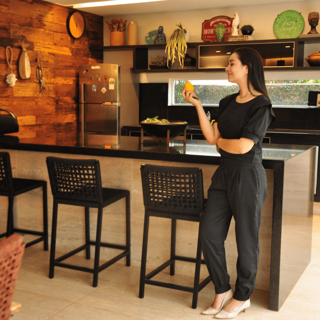 Apresentamos a Banqueta Nice, a escolha perfeita para elevar a elegância e o conforto em sua cozinha ou espaço de convívio.