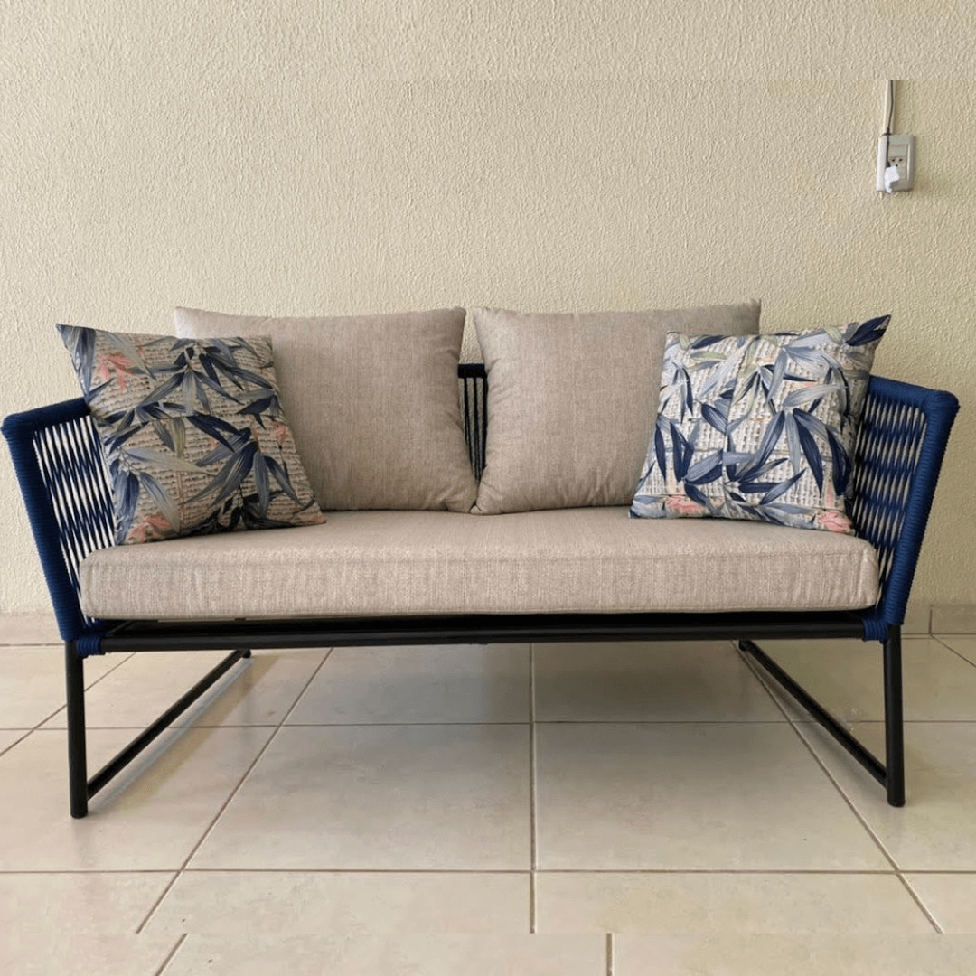O revestimento em corda náutica adiciona um toque moderno e sofisticado à Namoradeira Elias, elevando ainda mais o seu design único. Além disso, o estofado impermeável não apenas proporciona conforto supremo, mas também combina praticidade com estilo, tornando-o perfeito para uso tanto interno quanto externo.